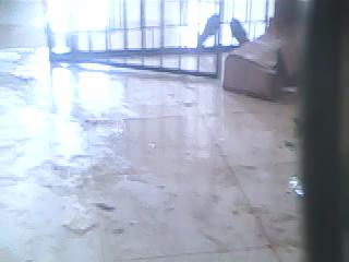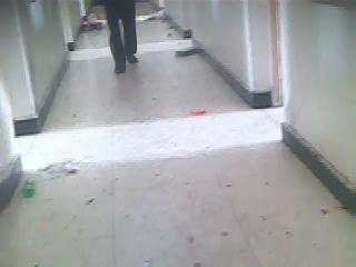 4、以下是2楼楼上的隔离栅栏内的肮脏地面。为了限制犯人的活动,监舍内很多地方都设立了隔离栅栏,好随时根据需要把犯人锁在不同的区域。
