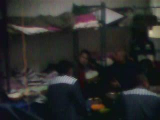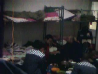 2、以下三幅照片是一间犯人住房,均是躲在室内右面的后墙角的上铺拍摄。第一幅是门口左面的一个上下铺。第二幅是挤坐在房中的犯人们。第三幅也是挤坐在房中的犯人们,所不同的是可以看到对面囚室,那里也同样拥挤不堪。