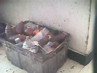 3、这是放在墙角的临时垃圾盒,相比其他监区,总算干净一点,因为很多监区连这样的垃圾盒也没有,就扔在地上。再早几年,每年春节期间可以弄十几个煤炉几千斤煤进来烧火做菜,垃圾常常堆在大院里占地十几坪,又脏又臭,直到初八以后年过完了才打扫卫生将其全部拖走。2010年后,监狱不允许弄煤进来,改为用电磁炉,每个监区可以有三四个,这样春节的卫生才好了点,但新的问题是很多没有地位的犯人要热一点菜就难了。