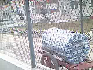 1、以下两图右下角是该监狱各监区用来拉热水的水车,这种水车用装有毒化学物品的铁桶改装而成。刚改装之初气味极其强烈,装的水因此根本无法饮用。一般每监区有两到三个这种水车,既用来装洗脸洗澡的热水,也用来装饮用水。