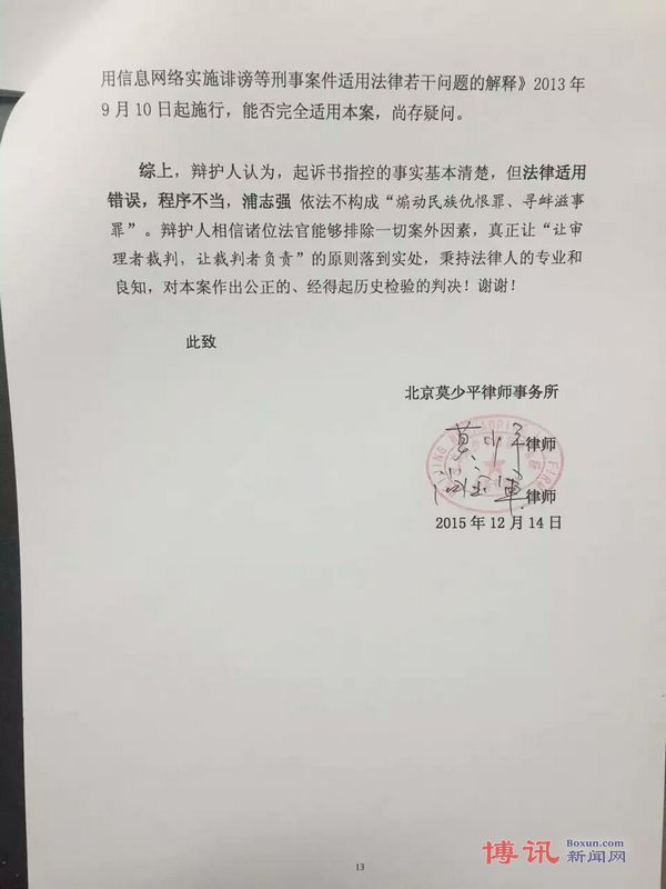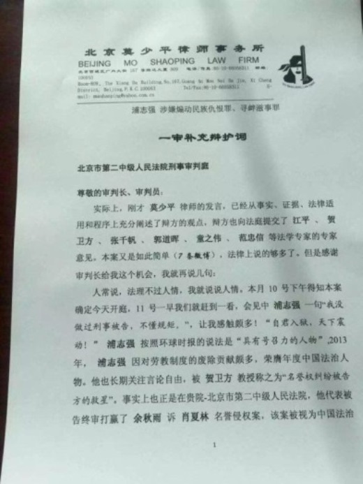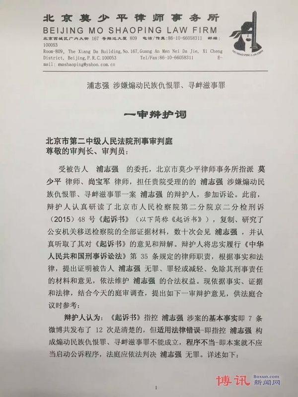 莫少平、尚宝军律师对浦志强案一审辩护词