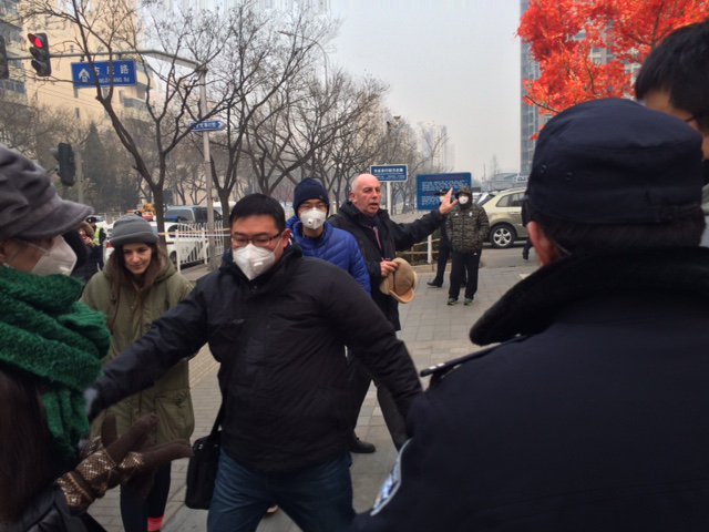数十名便衣警察粗暴对待记者和浦志强的支持者
