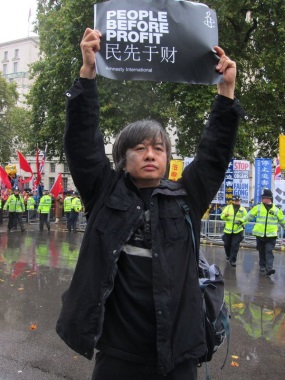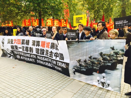 八九年曾任北高联常委邵江在伦敦抗议习近平时被英警方带走