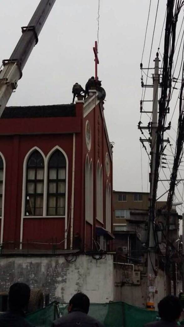 魔鬼横行中华。新年伊始2座教堂十字架先被强拆。2016.1.7.温州瓯海南白象南湖教堂,温州梧田东庄教堂十字架被拆。New Year's gift by PRC?2 churches crosses demolished 1/7