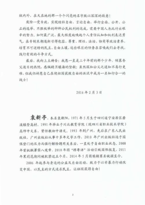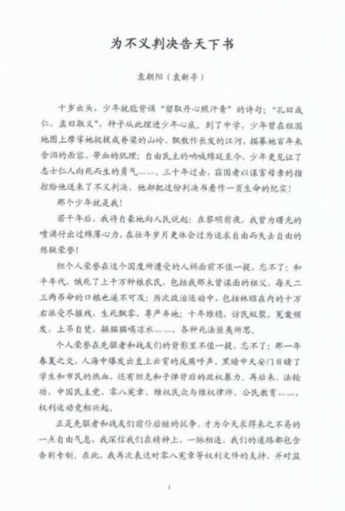 袁朝阳(袁新亭):为不义判决告天下书(图)