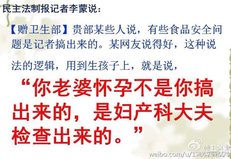 卫生部:有些食品安全问题是记者搞出来的(图)