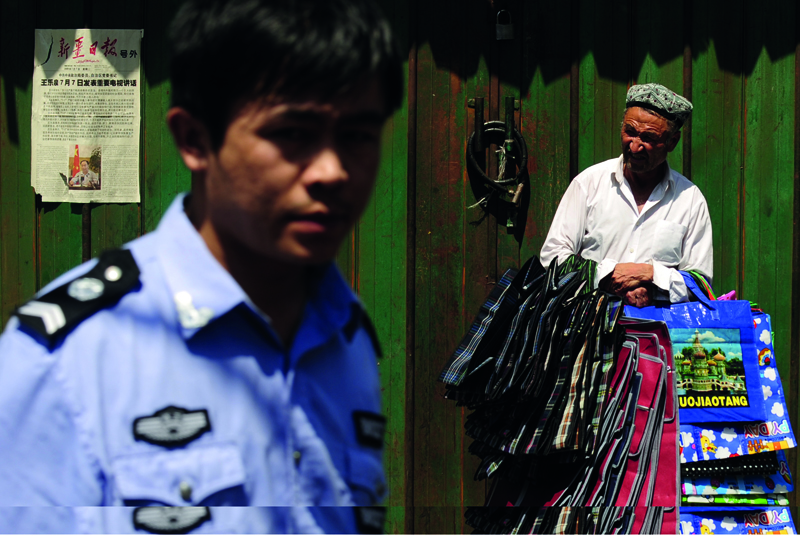 烏魯木齊街頭的警察與維吾爾商販