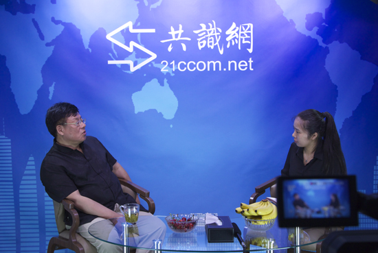 张鸣做客共识网,右:主持人刘一非 (蒲文昕/摄)