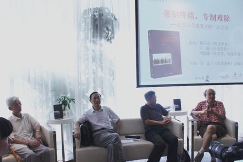 我在这本书的后记里提了八个字,叫做“帝制终结,专制难除”。皇权专制主义终结了,但是专制难除,中国封建社会长期遗留下来的专制主义要根除它是很困难的。我只想请大家回忆一个问题,我们想想从五十年代以来,我们在党和国家里面发生的一些问题和毛病出在什么地方?例如五十年代我们把胡风集团定为反革命,形成一大批文化人被打入敌人的行列,1957年我们把55万人定为右派,到了1959年-1962年三年间我们把300多万的干部和党员定为右倾机会主义分子,然后就是文化大革命,伤害了更多的人。中间还有一个三年灾荒时期,我们饿死的老百姓有千万人以上。我们从五十年代反胡风到1966年开始的十年文化大革命问题出在什么地方?我想问题都出在专制主义,出在家长制,出在一言堂,出在缺少民主的制度,民主的习惯,民主的作风。所以,由此看来,我们完全不能够忽视在反对防止资本主义复辟的同时要防止、要批判封建主义、批判专制主义、批判皇权专制主义。我的这本书也许在这方面能够给大家提供一点思想上的参考材料,也许这个书对于我们进一步来建设贯彻中国梦、进一步的促进改革开放可能会有一点用处。